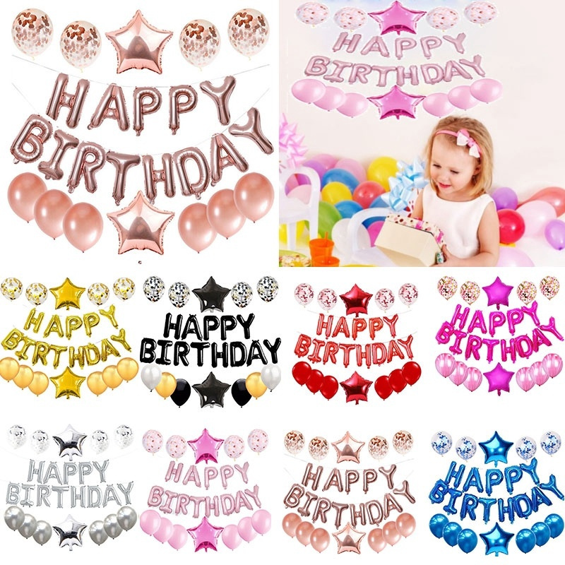 100% brand new and high qualityColor:Show as pictureWeight:140gMaterial:Aluminum filmPackage includes:14 Piece/set 1 set of 16 inch happy birthday letters + 4 confetti Latex + 6 latex + 2 18 inch five-pointed star#balloon #balloons #partydecor #party #DIY #birthdayparty #partydecoration #LatexBalloons