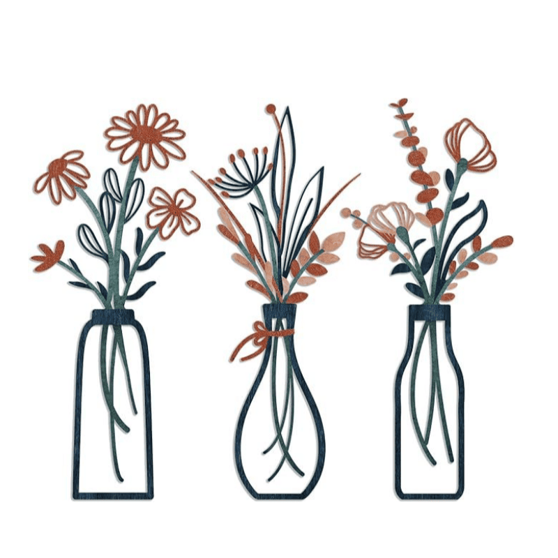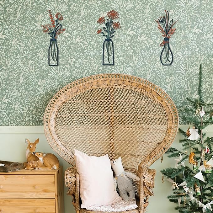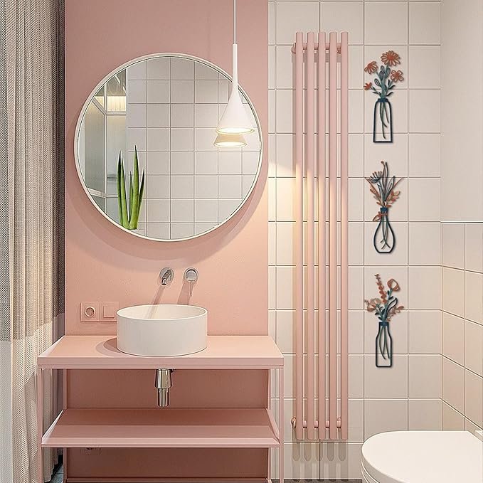 3 Pieces Metal Flowers Wall Arts - Rustic Farmhouse Decor Minimalist Flower Wall Decors for Living Room Bathroom Bedroom Dining Room-Housewarming Gifts