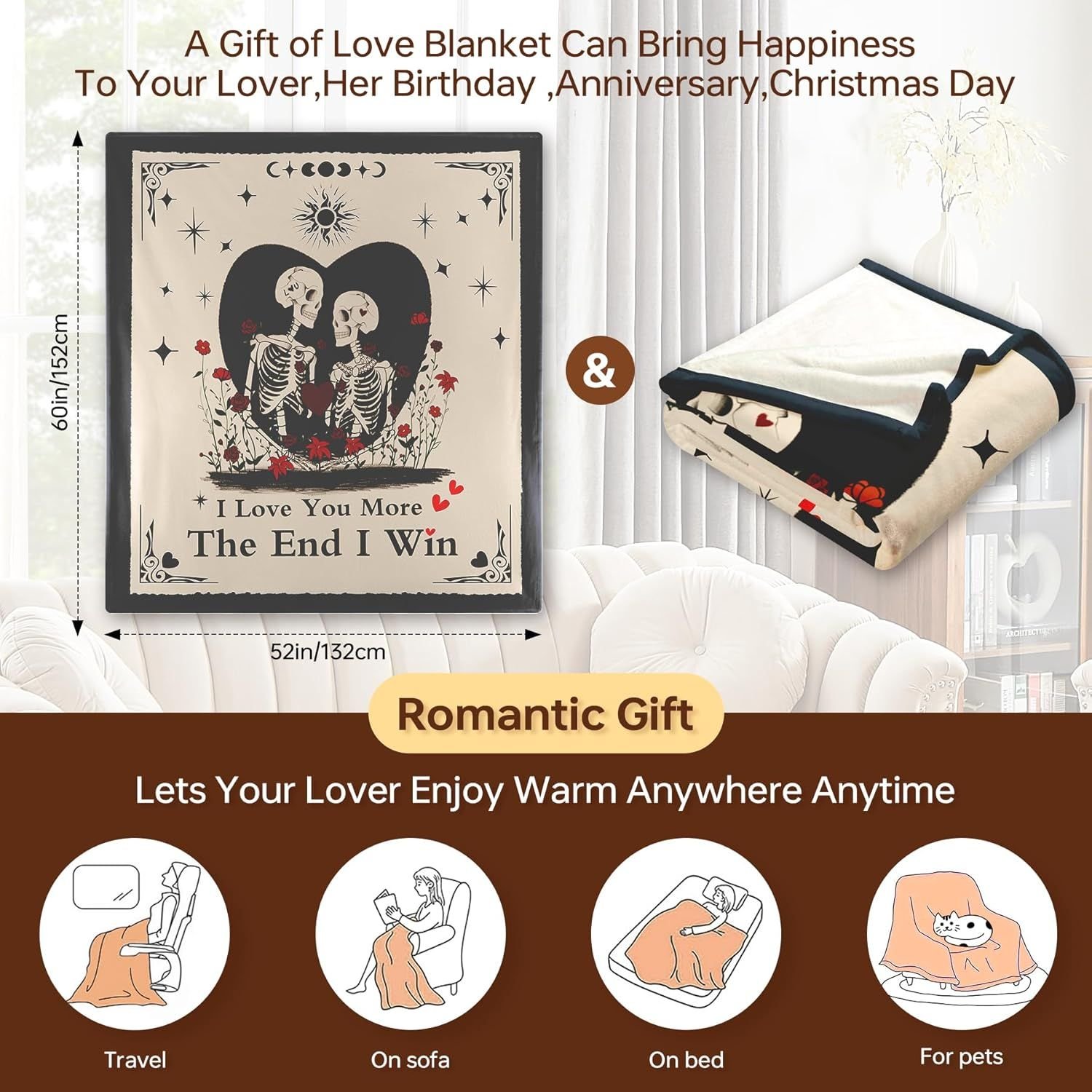Anniversary Couple Gift Blanket for Her Him,Skull Lover Throw Blanket for Boyfriend Girlfriend 60"X52",I Love You More Wedding Birthday Gift for Husband Wife,Christmas Skeleton Decor Present for Women