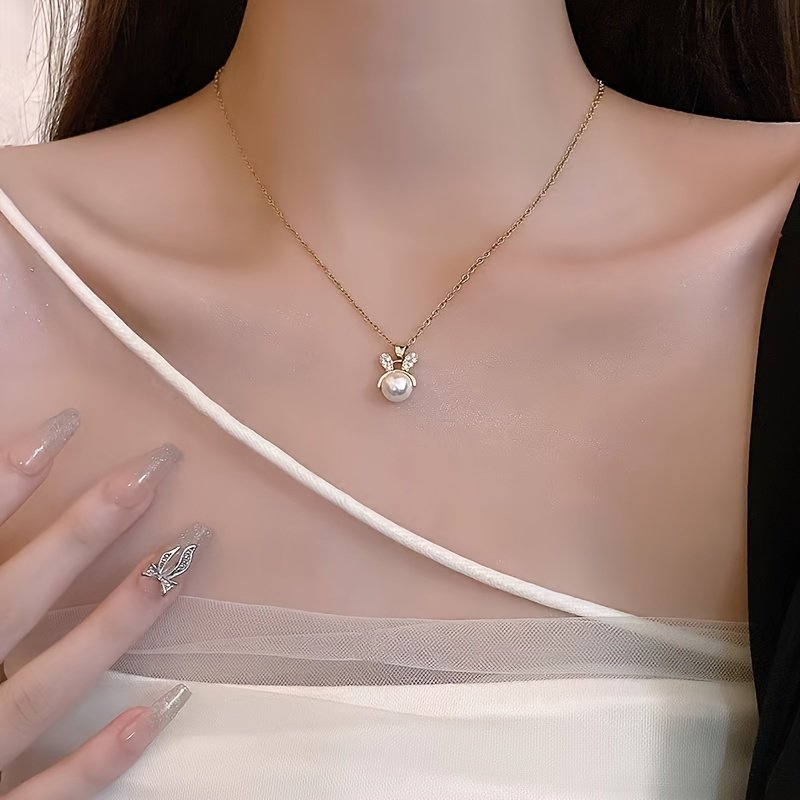 Bunny Rabbit Faux Pearl Pendant Necklace