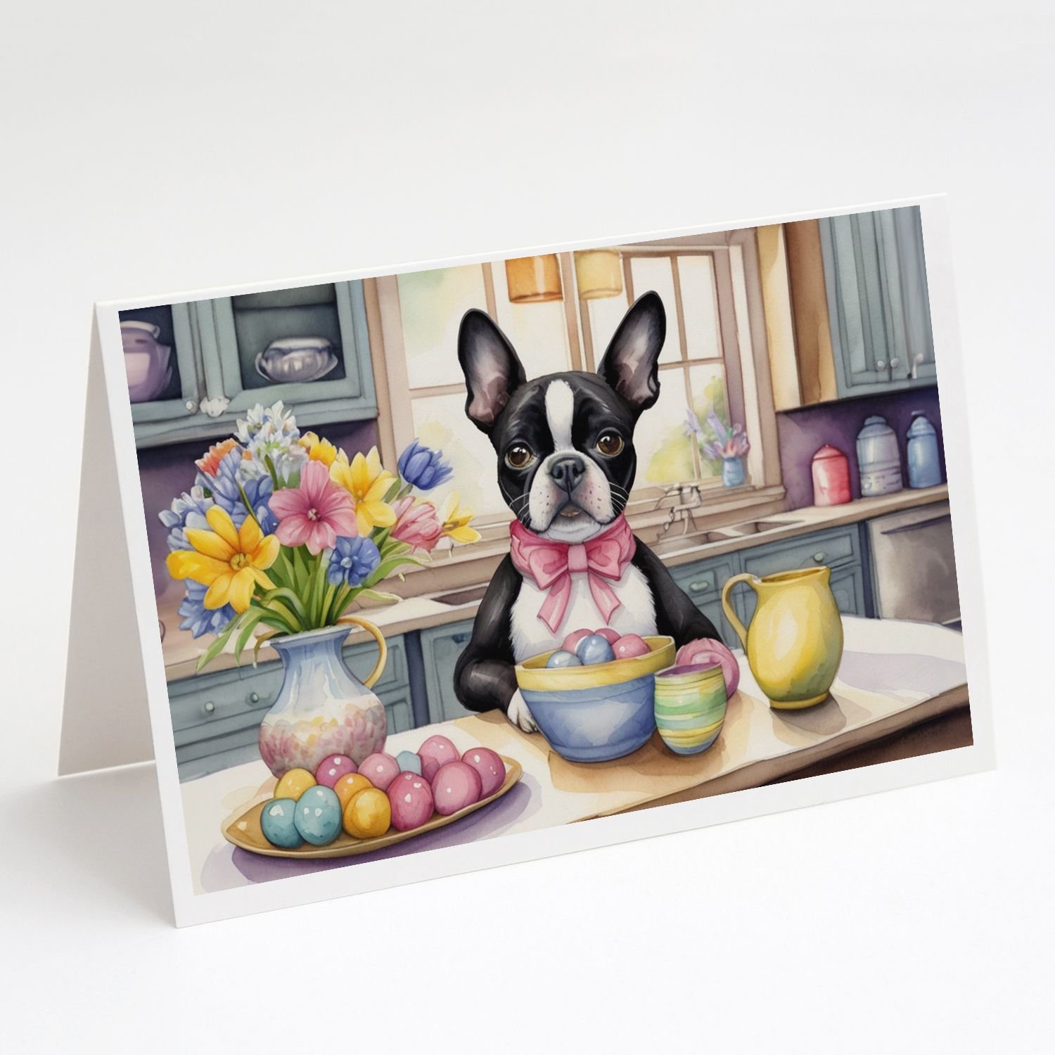 Greeting Cards Pack of 8 featuring breed specific Boston Terrier artwork. Celebrate Easter with this Easter . Celebrate special moments with Caroline's Treasures Printed Greeting Card Pack. This pack includes eight beautifully folded 5x7 cards, accompanied by eight matching white envelopes. With blank interiors, these cards provide ample space for your personalized messages and heartfelt holiday greetings. Each card features captivating full-color artwork, meticulously printed in our facility on high-quality 80 lb cover stock or 216 GSM. The super smooth finish of the white cards enhances the visual impact of the artwork, creating a truly stunning presentation. Designed by our talented in-house artists or licensed artists, the artwork on these cards showcases their creativity and attention to detail. From vibrant illustrations to captivating designs, each card tells its own unique story. Whether it's for birthdays, anniversaries, holidays, or any special occasion, Caroline's Treasures Greeting Card Pack is the perfect way to convey your heartfelt sentiments. Share joy, love, and warm wishes with these exquisite cards and make every moment unforgettable.