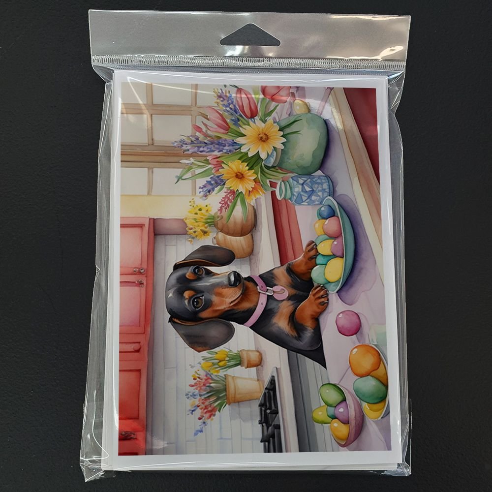 Greeting Cards Pack of 8 featuring breed specific Dachshund artwork. Celebrate Easter with this Easter . Celebrate special moments with Caroline's Treasures Printed Greeting Card Pack. This pack includes eight beautifully folded 5x7 cards, accompanied by eight matching white envelopes. With blank interiors, these cards provide ample space for your personalized messages and heartfelt holiday greetings. Each card features captivating full-color artwork, meticulously printed in our facility on high-quality 80 lb cover stock or 216 GSM. The super smooth finish of the white cards enhances the visual impact of the artwork, creating a truly stunning presentation. Designed by our talented in-house artists or licensed artists, the artwork on these cards showcases their creativity and attention to detail. From vibrant illustrations to captivating designs, each card tells its own unique story. Whether it's for birthdays, anniversaries, holidays, or any special occasion, Caroline's Treasures Greeting Card Pack is the perfect way to convey your heartfelt sentiments. Share joy, love, and warm wishes with these exquisite cards and make every moment unforgettable.