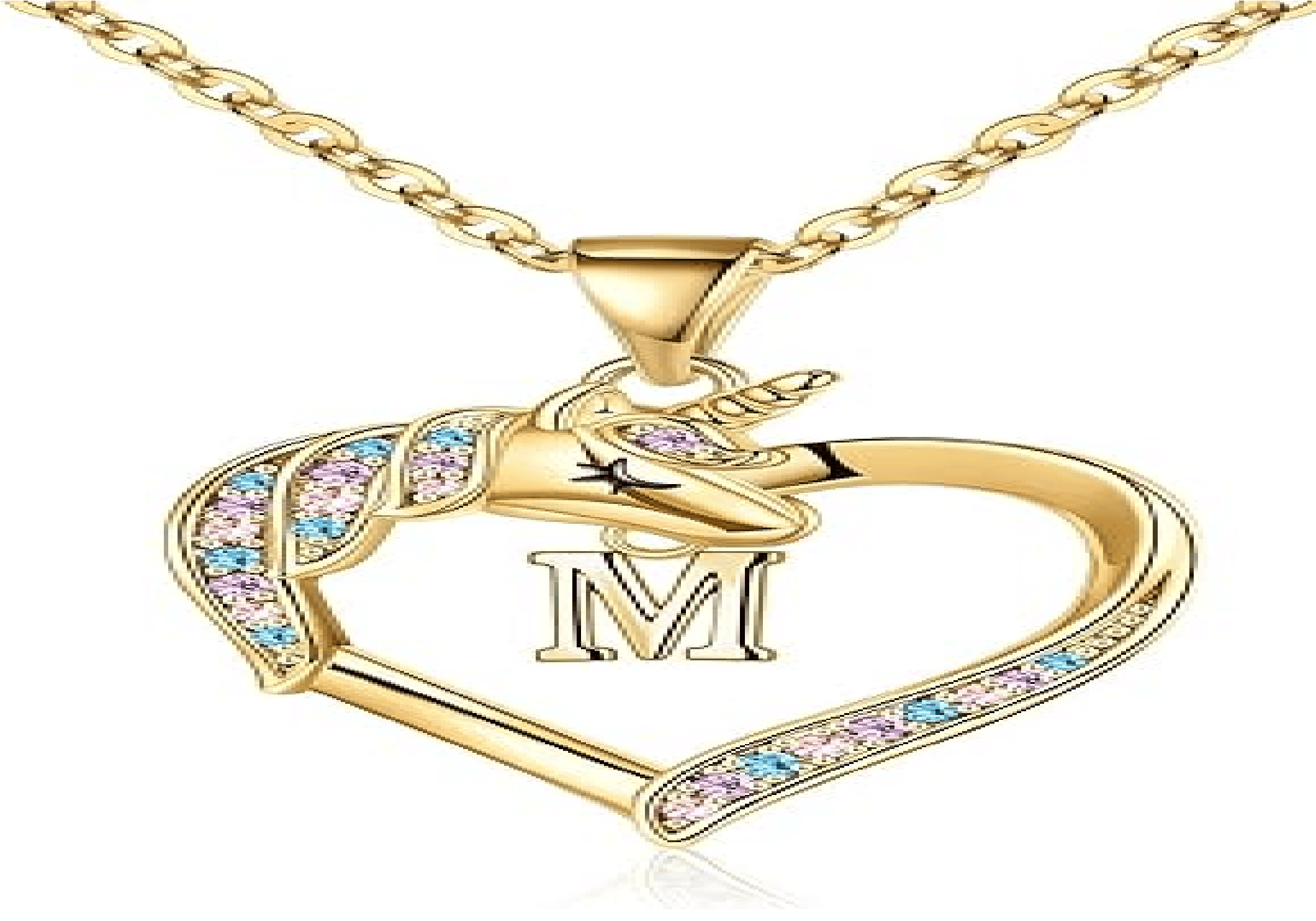 Easter Gifts for Kids Girls - Unicorn Necklace for Girls, Colorful CZ Heart Unicorn Necklace Kid Jewelry Initial Necklaces for Girl Birthday Gifts