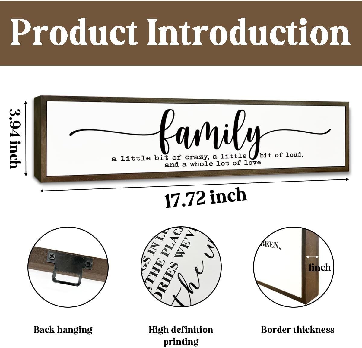 Family Signs Decor, Wood Framed Wall Decor Sign, Farmhouse Wooden Plaques, Positive Home Decors for Living Room, Bedroom, Kitchen, Housewarming Gifts, Framed Wooden Box Sign 17.8x4x1.2 inches