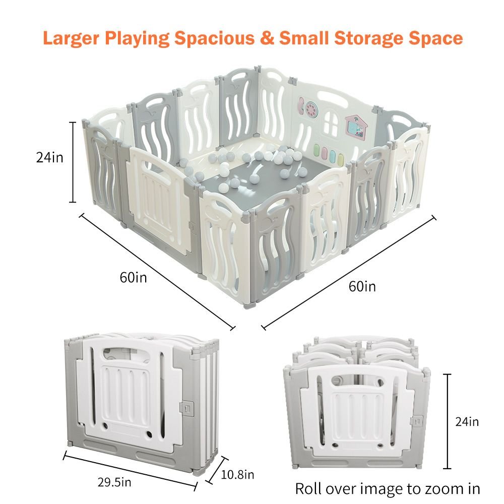 4.Large area:The fully expanded size is 59"x61"x24". Provide a sufficiently large and safe place for your active baby to release her/his nature.You can also increase or decrease the panel to change the shape and area,suit your needs!