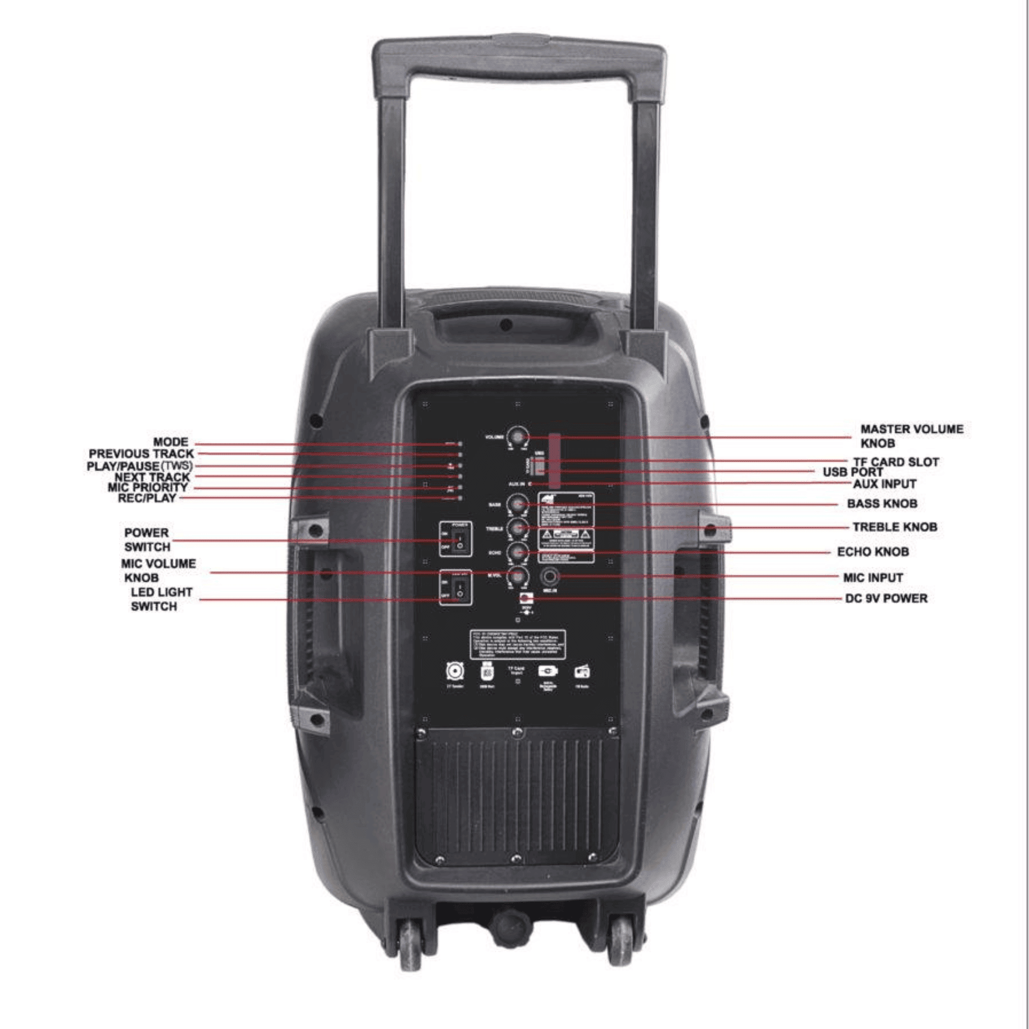 - Built-in trolley and wheels allow you to move the speaker anywhere easily
