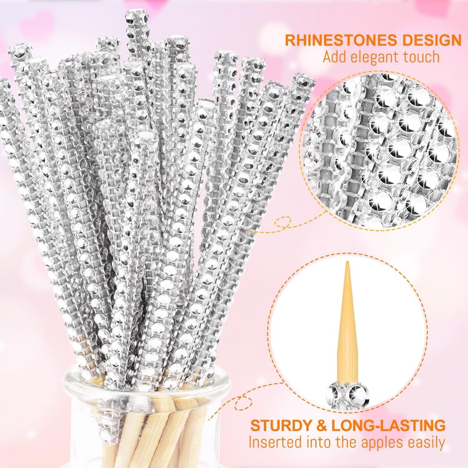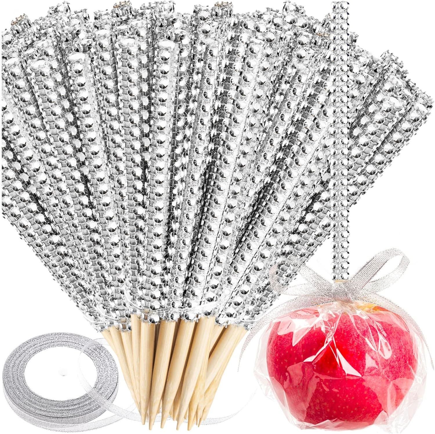 Silver Candy Apple Sticks, 26Pcs Bling Caramel Apple