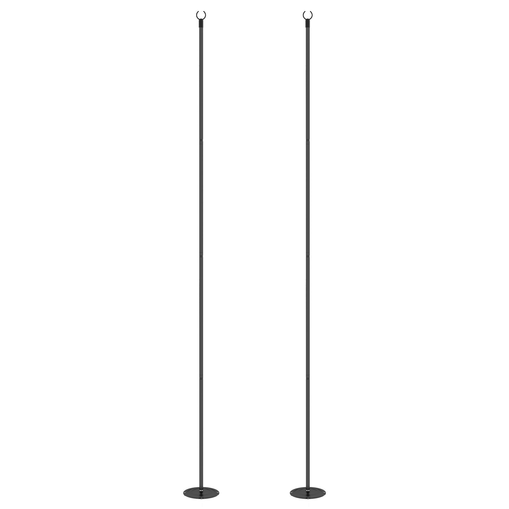 2.- 3 Installation Styles: Setting up these poles is a breeze - simply connect the segments, then choose from three different installation methods - Insert into the soft ground with the four-prong ground stakes, directly fix on the hard ground with the hardware kits, or use the brackets to secure them to deck guardrails or fences..
