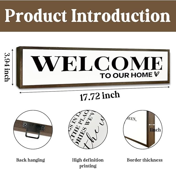 Welcome Home Decoration Sign, Farmhouse Decor for Front Door, Rustic Porch Sign, Table Shelf Wall Decor Art, Housewarming Gifts, Disney Lover Home Decors, Welcome to Our Home Signs 17.8x4x1.2 inches